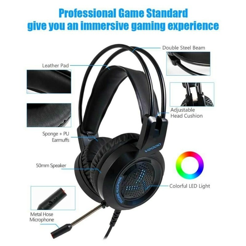Produit: Jedel Casque Gamer Stereo LED RGB LIGHT avec Microphone Pour PC, PS3, PS4,XBOX+Sticker