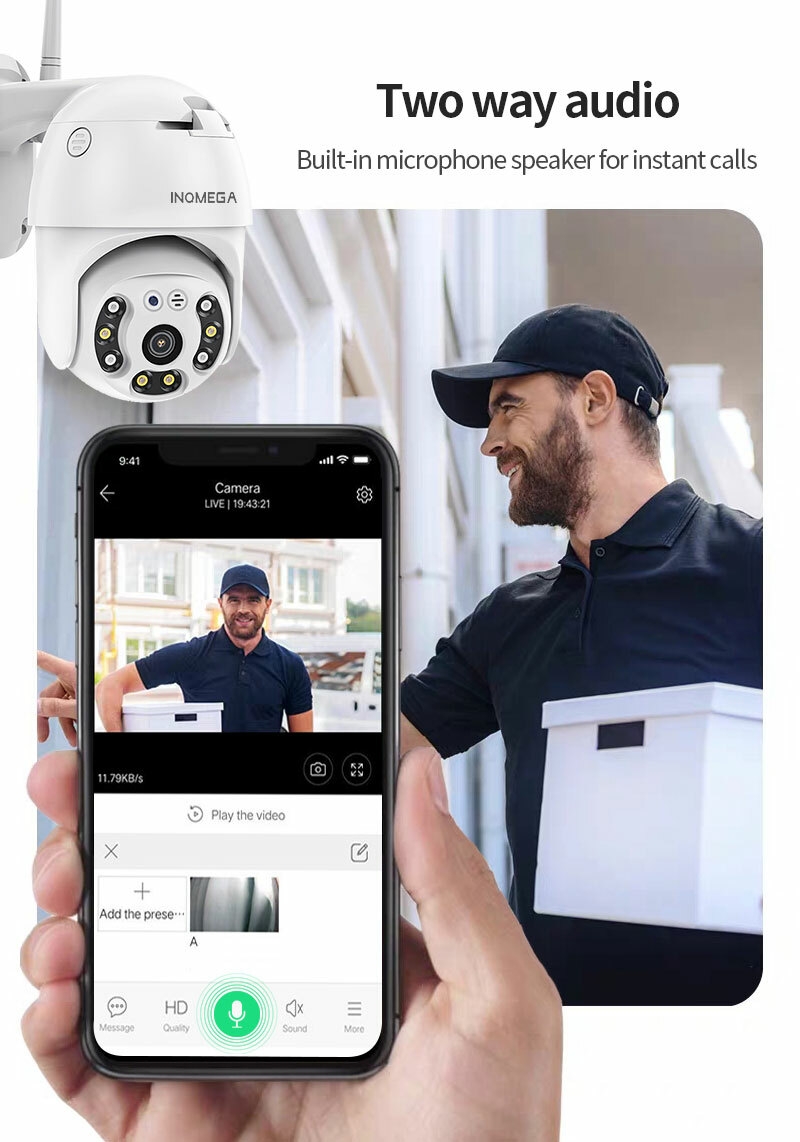 passe des lieux cibles. Avec la vue en direct, où que vous soyez, vous pouvez vérifier votre maison à tout moment et être averti de l'alerte de détection via l'application NGTeco Home. Écoutez et parlez de manière interactive avec votre famille.